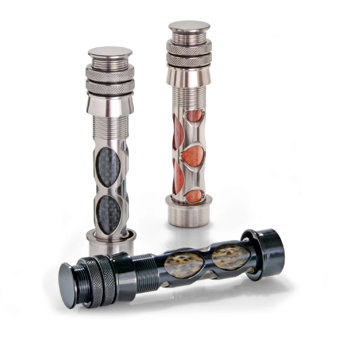 - Available with anodized aluminum, woven graphite or burled wood inserts