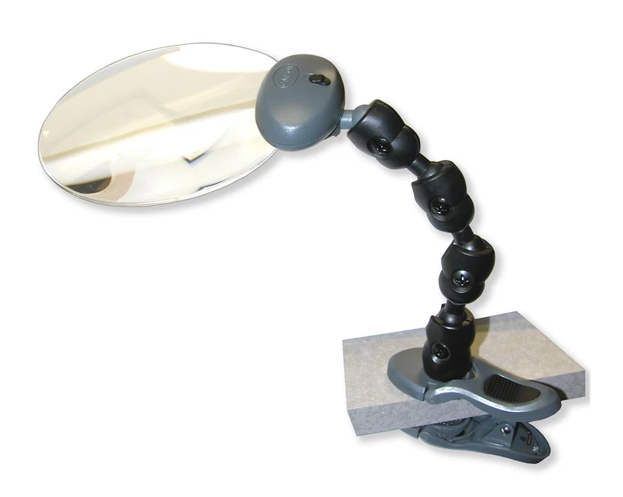 The AM-20 LED Attach-A-Mag™ from Carson Optical is a Hands Free, fully adjustable, LED lighted Magnifier with a clamp-on base that attaches to most tabletops. Its large 2x power acrylic lens provides sharp, crystal-clear images.