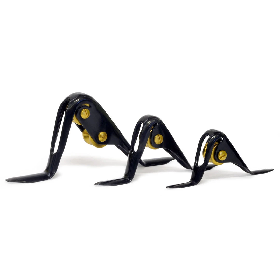 AFTCO’s superb Big Foot® Super Heavy Duty (SHD) roller guides feature rugged, roomy frames with unequalled knot clearance. Rollers and bearings are extra large and extra tough to endure the special punishment of this heaviest line class. AFLON™, an exclusive *Teflon® formulation, is bonded to all bearings to provide lasting lubrication and protection. The oversized feet are precisely formed to match the contours of leading rods in this class, and they grip the rod with exceptional strength. The edges of the AFTCO roller guide feet are “feathered” to allow winding thread to “climb” over them easily. A complete set of five includes the double roller stripper guide and two each of the two super heavy duty single-roller guides, graduated in size. Our Big Foot® Super Heavy Duty (SHD) roller tip-tops are a perfect match for these guides.