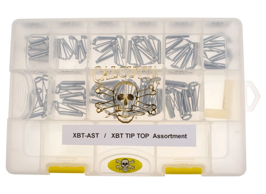 An assortment of 55 of the most common boat rod tip-top sizes. Includes FREE storage case with dividers and a FREE piece of tip-top adhesive. Tip-top model no. WBT with Polished Wire Frame. Sizes may vary depending on availability.