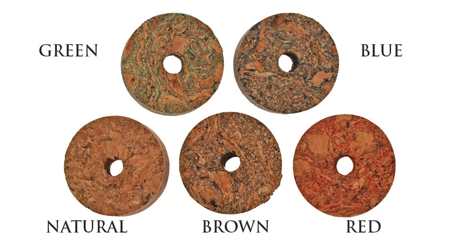 Burl Cork Rings are used to make accents on custom cork handles. Available in Red, Green, Blue, Brown and Natural Burl.