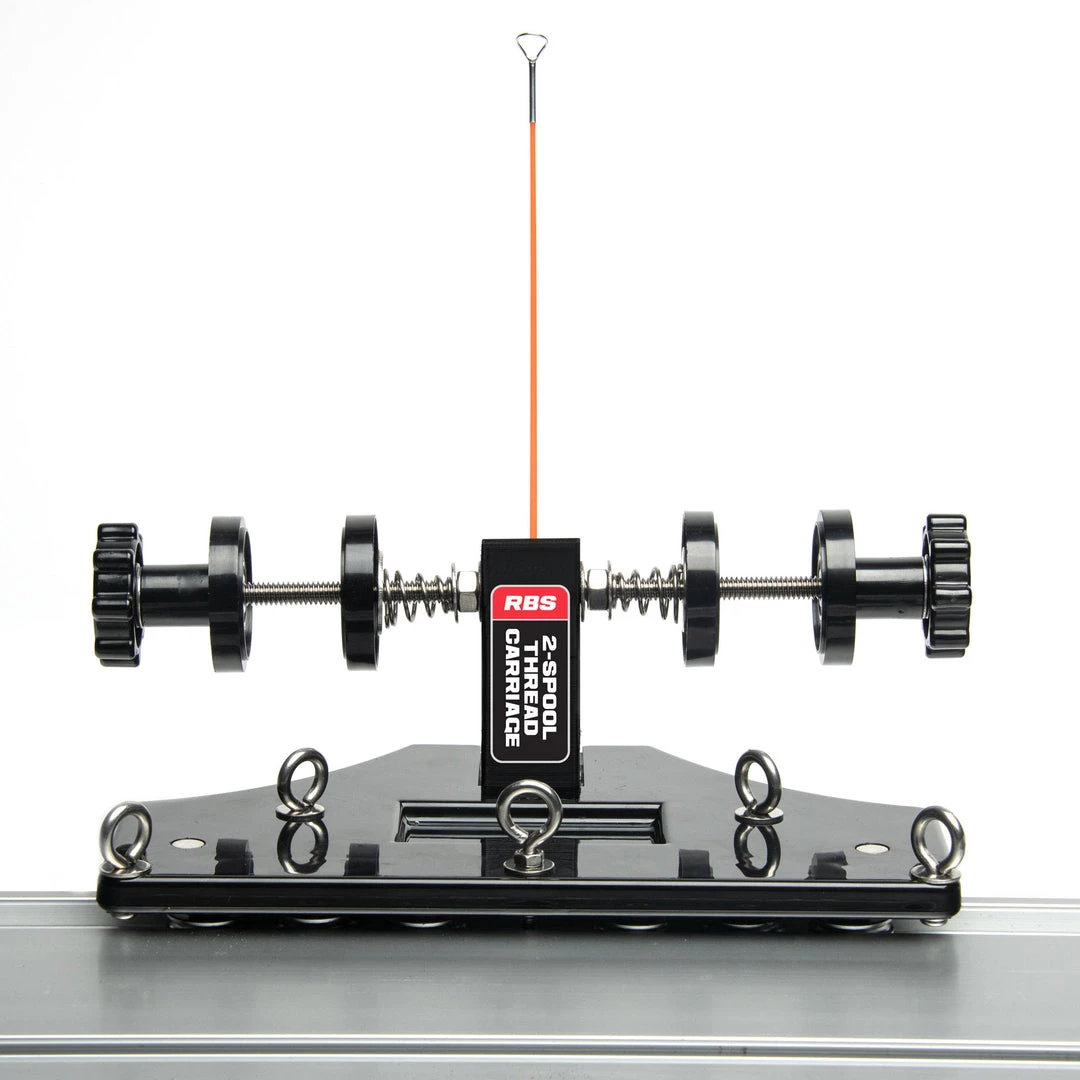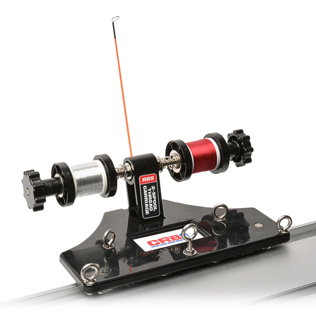 The RBS 2-Spool Thread Carriage mounts directly to the RBS aluminum base track and features an all-new ball bearing and spring system that eliminates friction for the ultimate control of your thread wraps. Dual oversize tension knobs secure both small and medium thread spools and allow for precision tension tuning to get your wraps just right. The smooth-rolling base also includes multiple thread guide layouts for better positioning during tricky wraps, and two convenient neodymium magnets to secure razor blades, thread picks, and more. The RBS-TC2 can even be used to upgrade existing power wrappers from Pacific Bay and American Tackle!