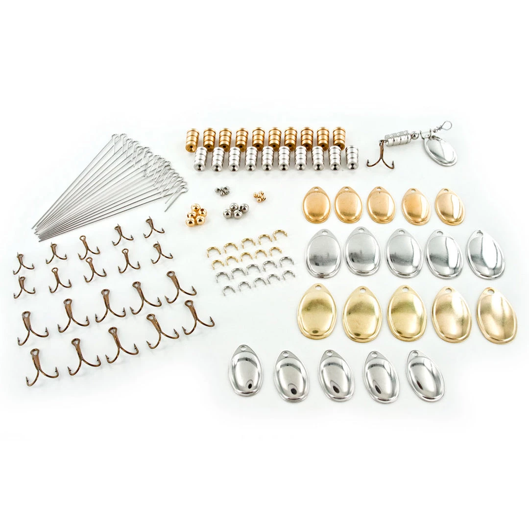 This kit contains all of the parts needed to build 20 inline spinners. The only tool required for assembly is a pair of needle nose pliers to create the loop at the wire.