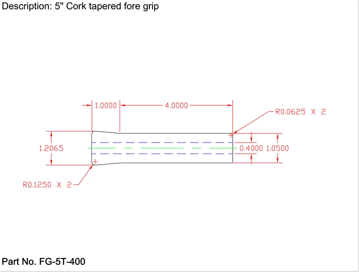 5″ Super Grade Reverse tapered foregrip, 0.400″ ID.