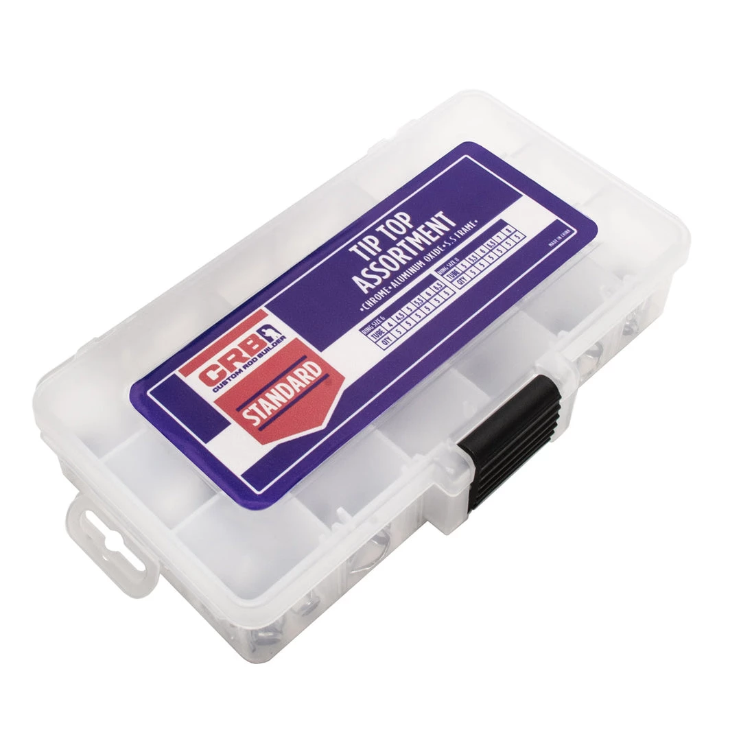 Each assortment contains 60 tip-tops in your choice of black or polished stainless steel!