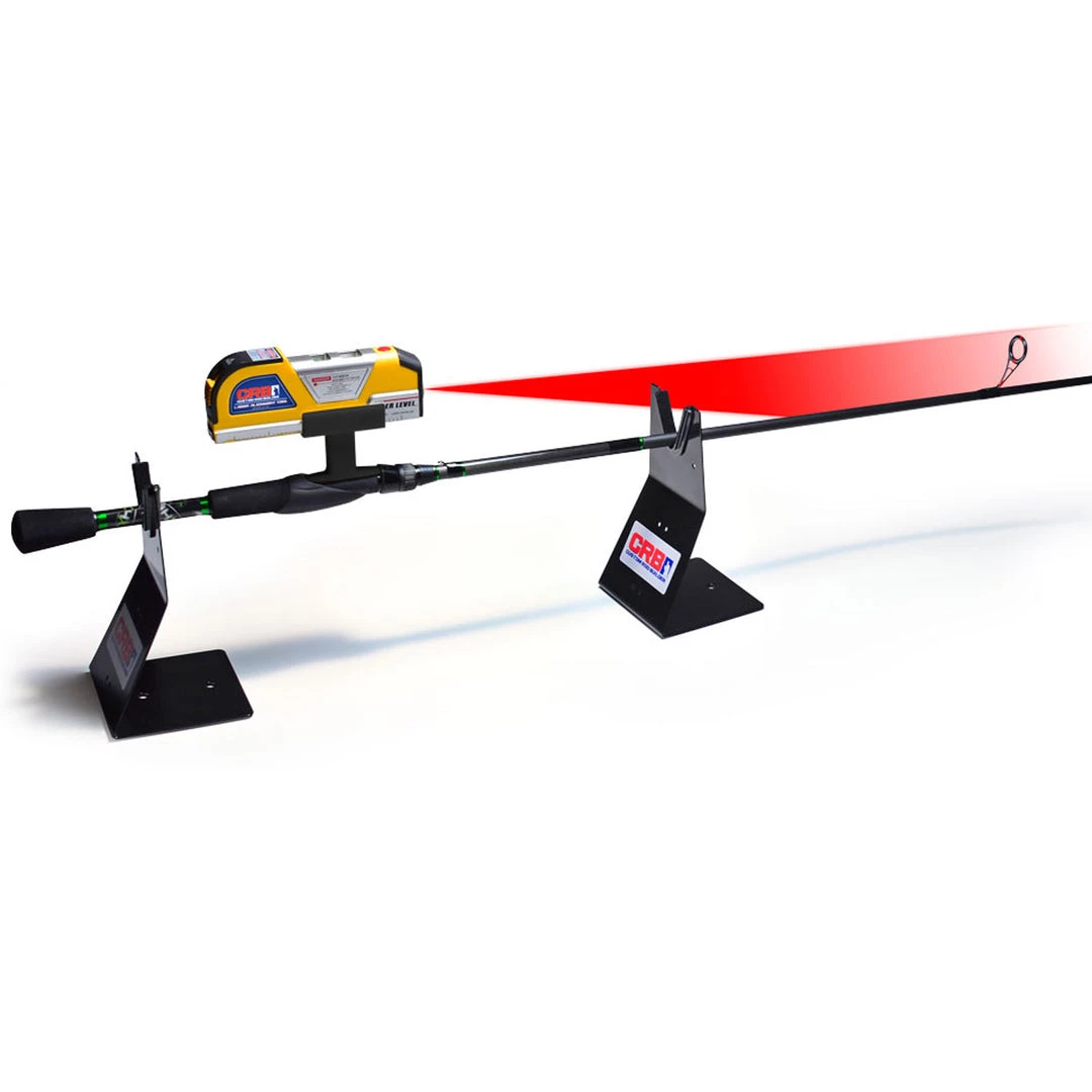 Properly aligning guides can be one of the most tedious tasks when building a custom rod. The CRB Laser Alignment System features a reel foot mount mounted laser housing with vertical beam, leveling bubbles and reversible tape measure. Once mounted, a perfectly straight beam is projected down the rod all the way to the tip. The vertical laser makes aligning guides and butt wraps a snap. While fishing rod blanks are not as straight as a laser, this tool will greatly aid you in aligning your guides.