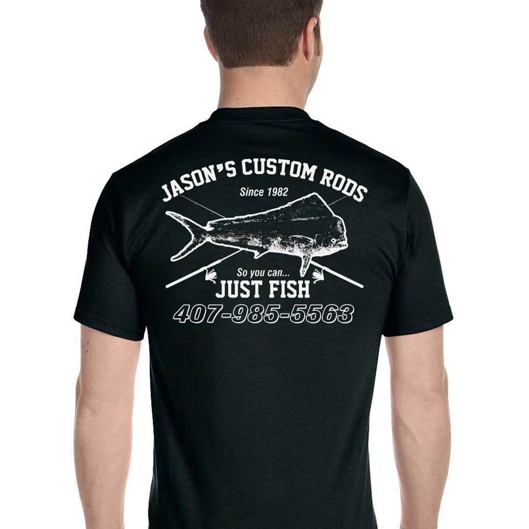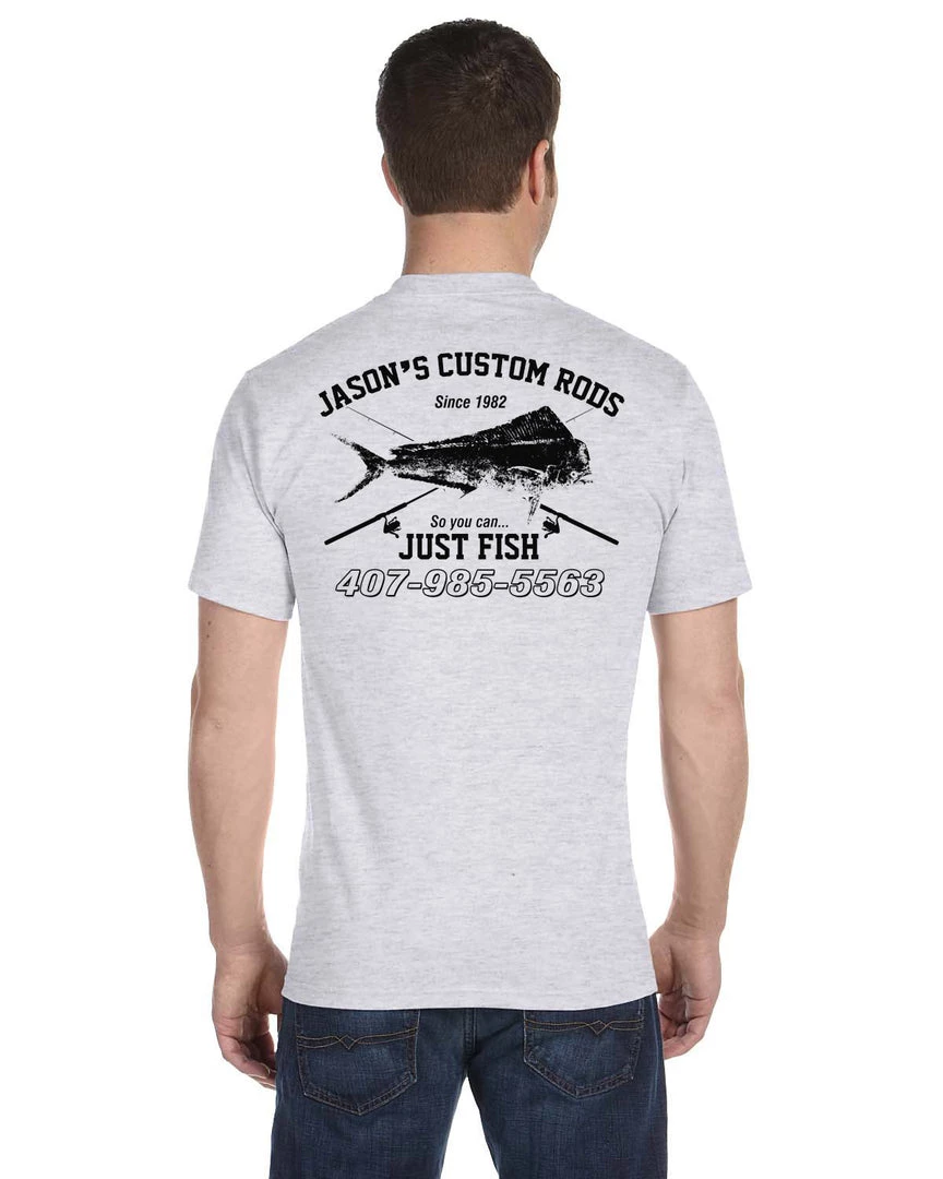 Note: Front graphics are printed over the left breast. The main artwork prints on the back side.