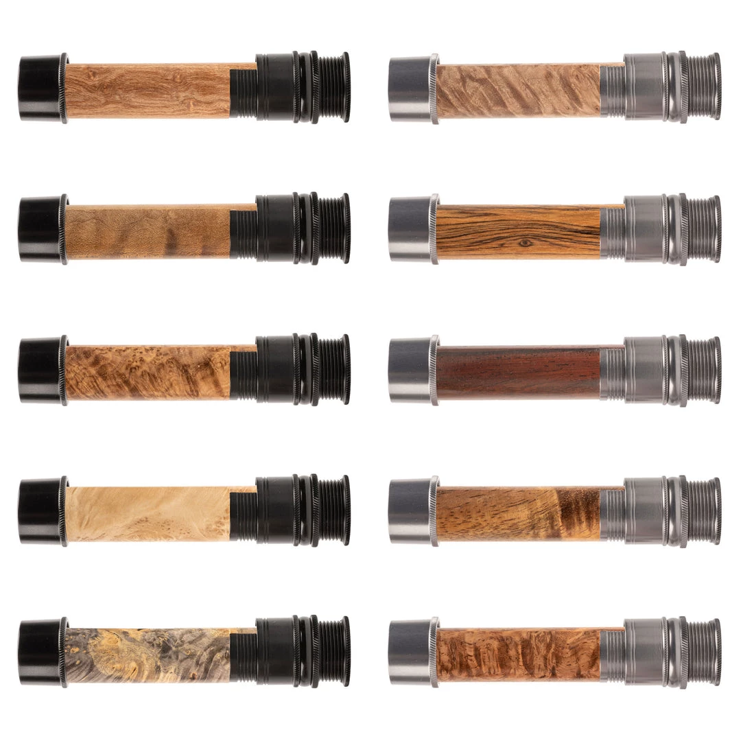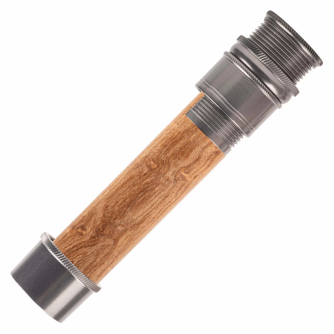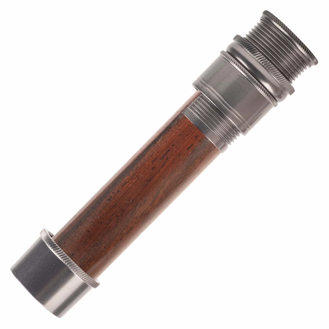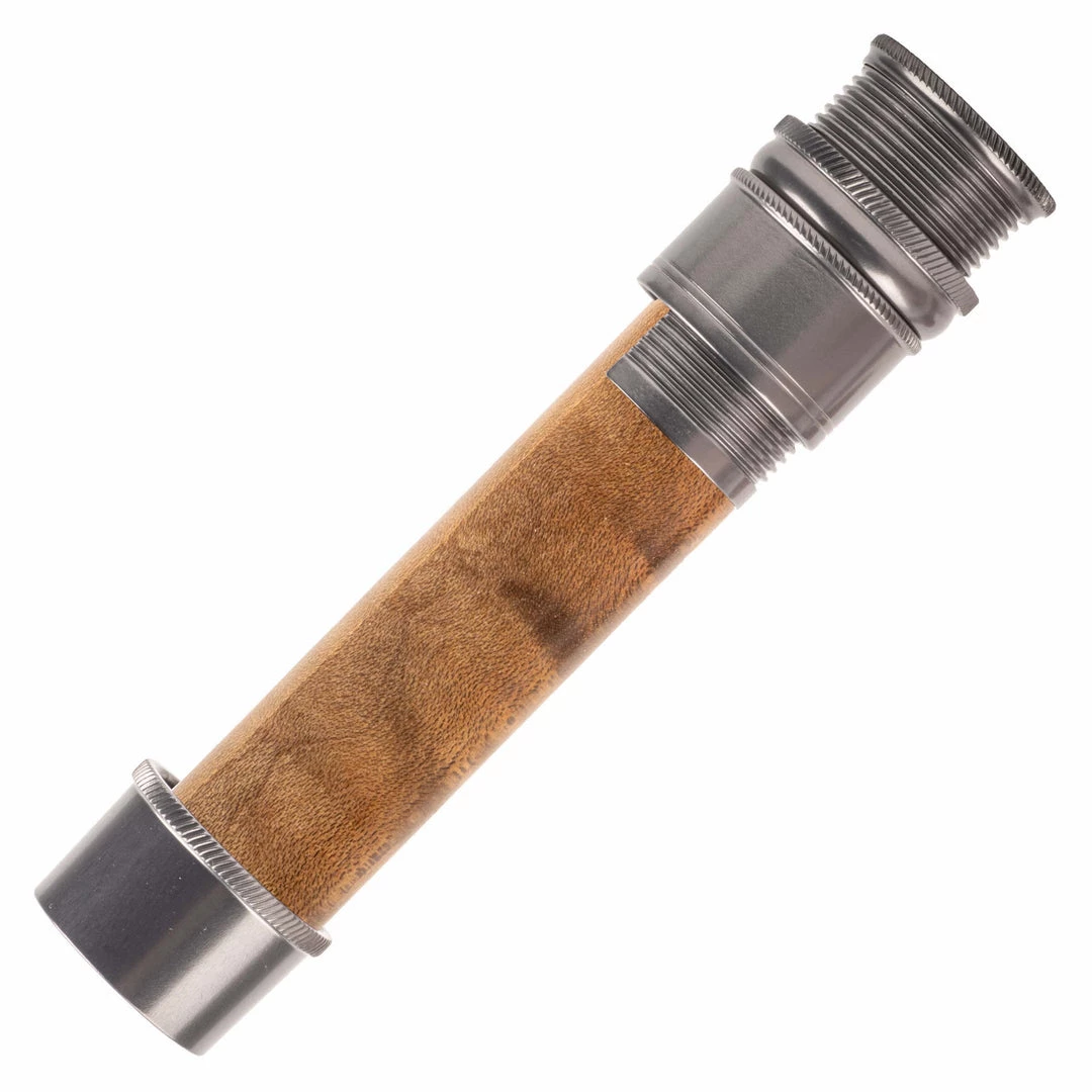 This reel seat is identical in features to the AUS except in a downlocking configuration. Fine thread, skeleton design with mortised spacer. Knurled nut, slide band, and fixed hood. Recommended for #3-7 line weight rods.