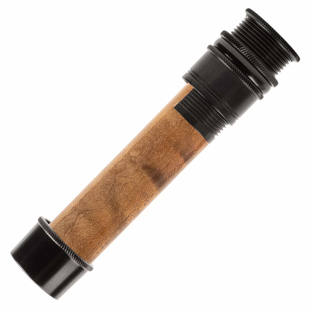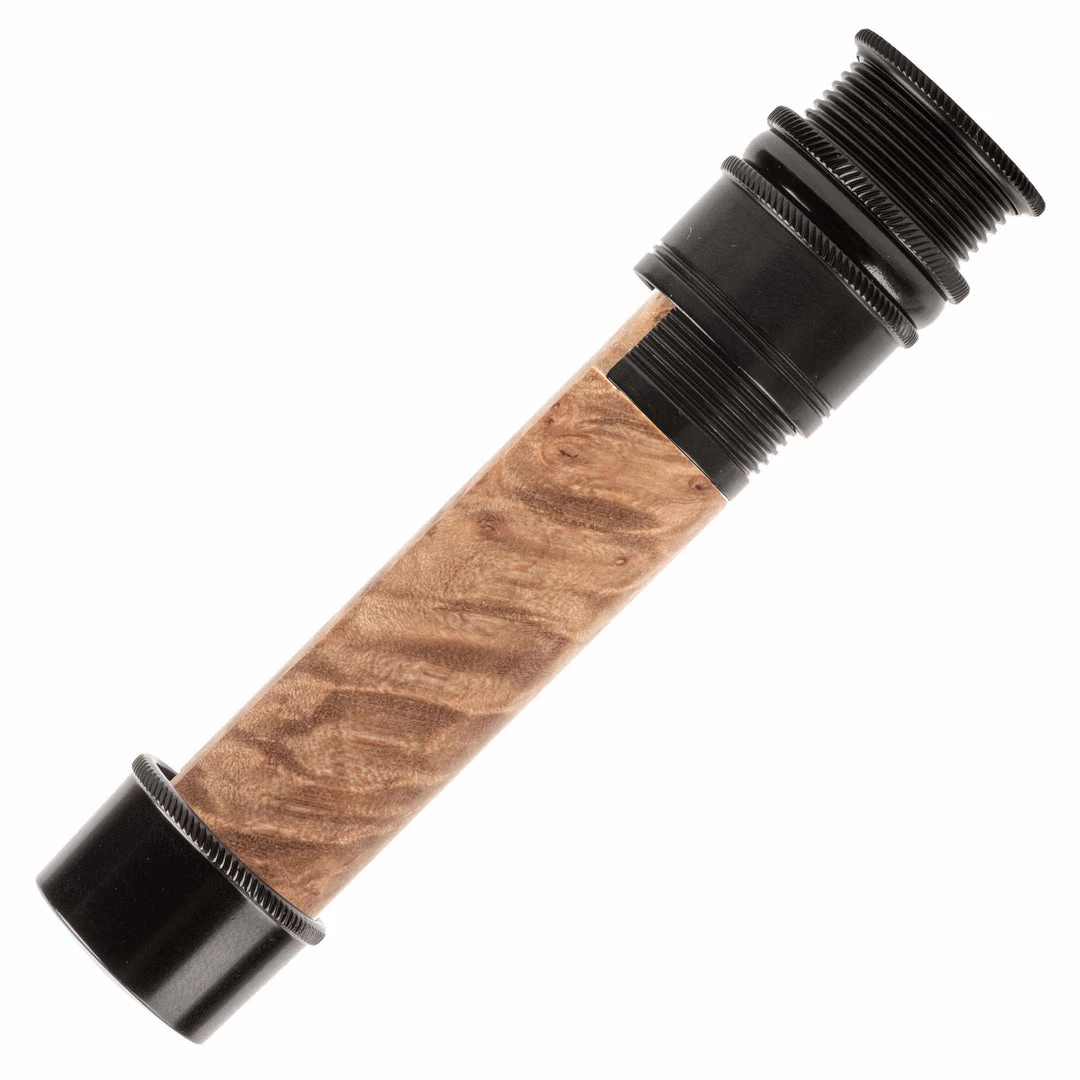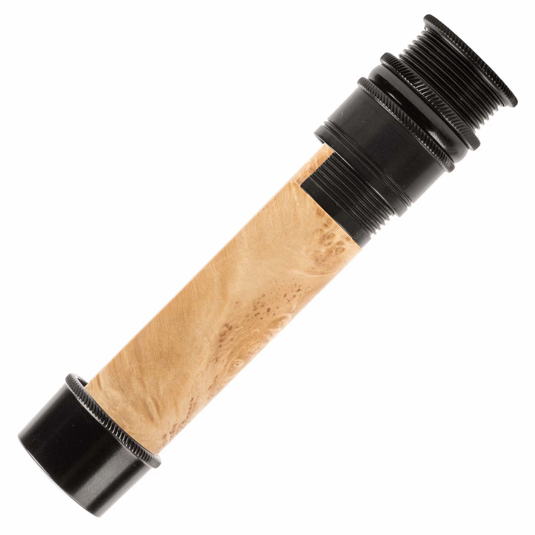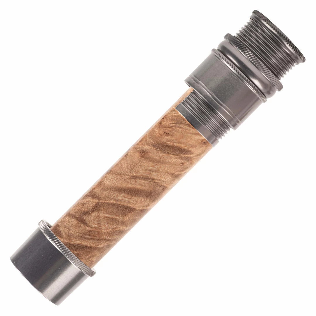 This reel seat is identical in features to the AUS except in a downlocking configuration. Fine thread, skeleton design with mortised spacer. Knurled nut, slide band, and fixed hood. Recommended for #3-7 line weight rods.