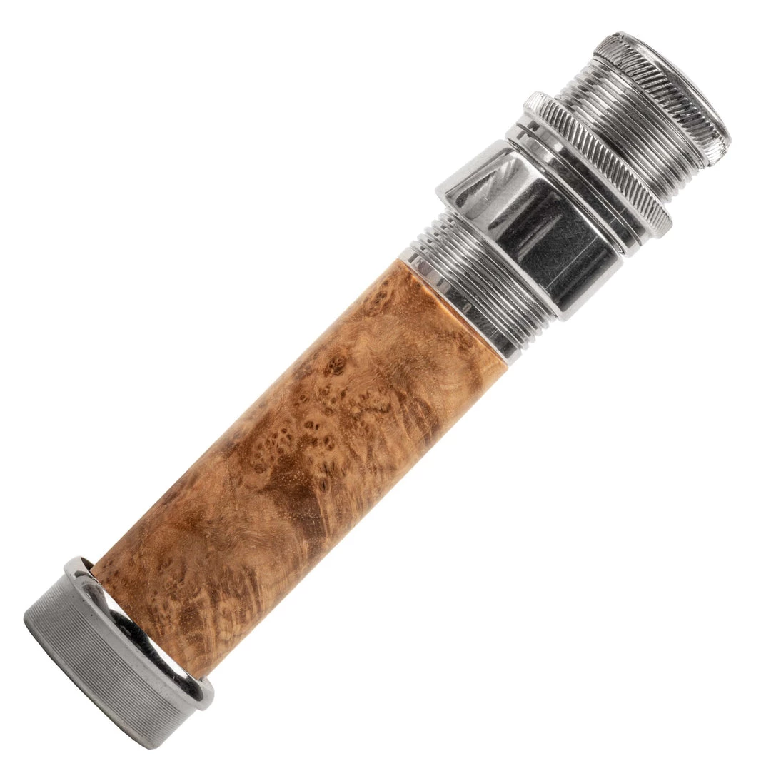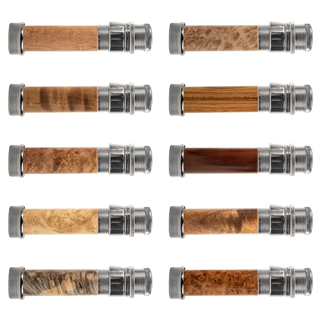 Lightweight reel seat featuring uniquely shaped milled slide, milled hood, single knurled nut with trim band. Butt cap features REC’s unique stepped design.